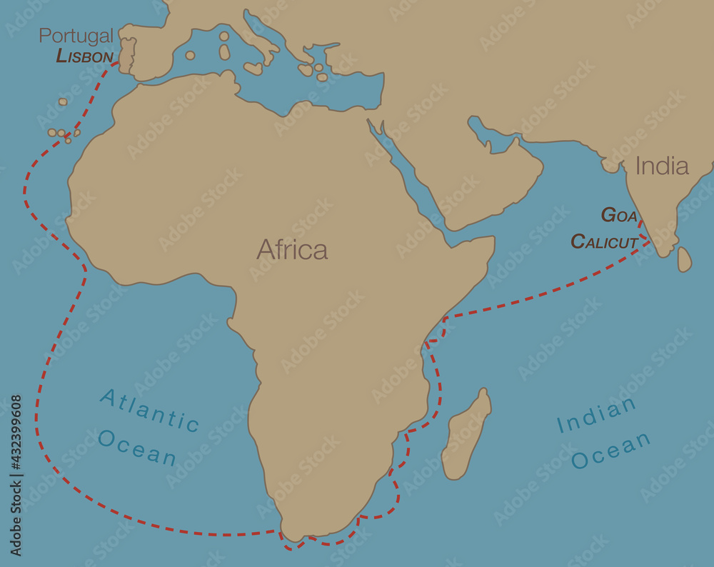 Vasco da gama map hires stock photography and images Alamy. 1460, Sines, Portugal—died December 24, 1524, Cochin, India) was a Portuguese navigator whose voyages to India (1497-99, 1502-03, 1524) opened up the sea route from western Europe to the East by way of the Cape of Good Hope. this map shows the route of da Gama sailed from 1497 to 1498 to reach India.